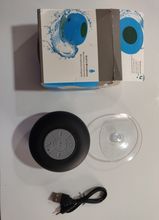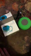 The box came a little crumbled but nothing inside was damaged. The speaker looks good, came with a charger, but for its price, you can’t expect a high quality, clear sound. Overall, it’s a good speaker for your bathroom or indoors.